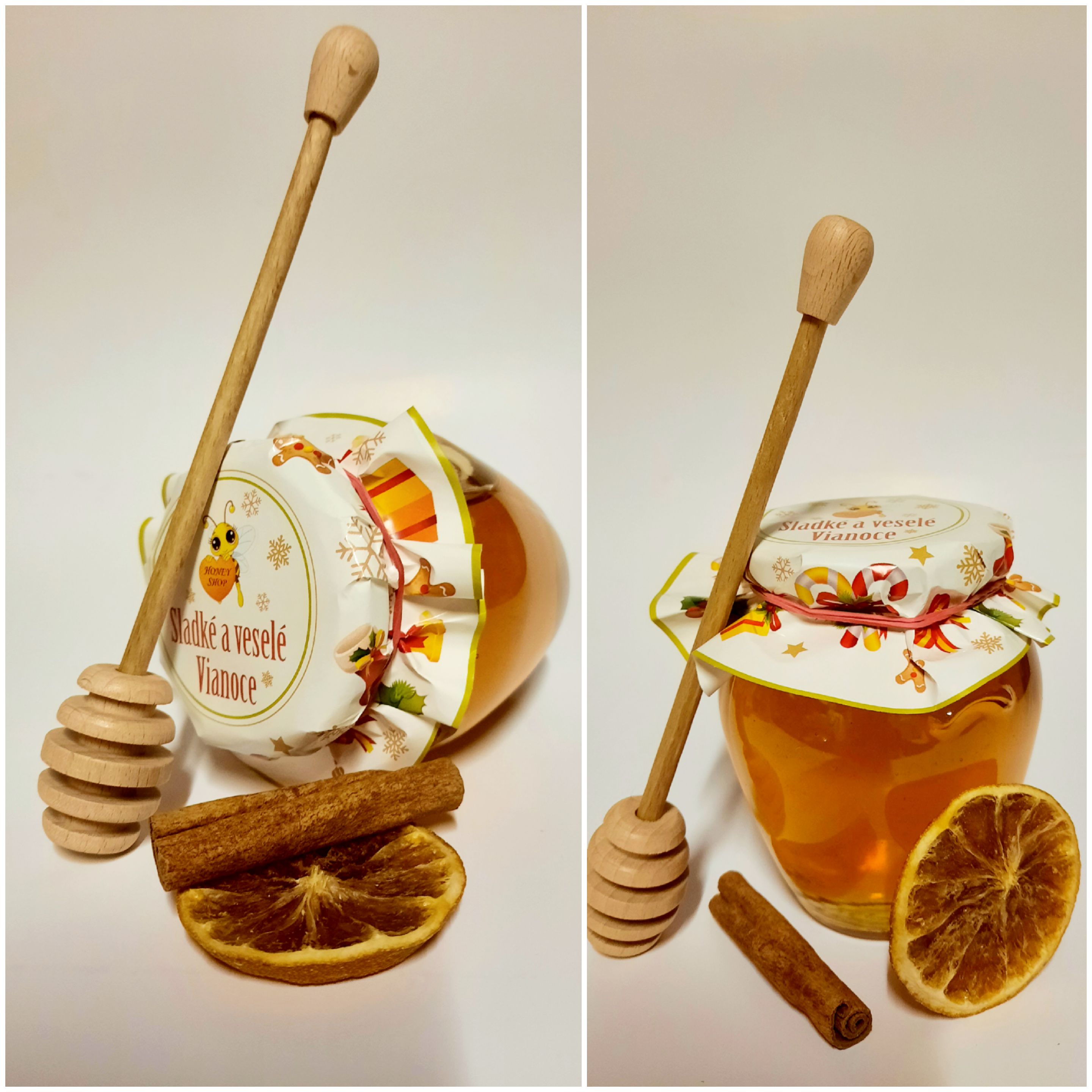Kvetový medík s vianočnou etiketou, vhodný ako malý darček ...