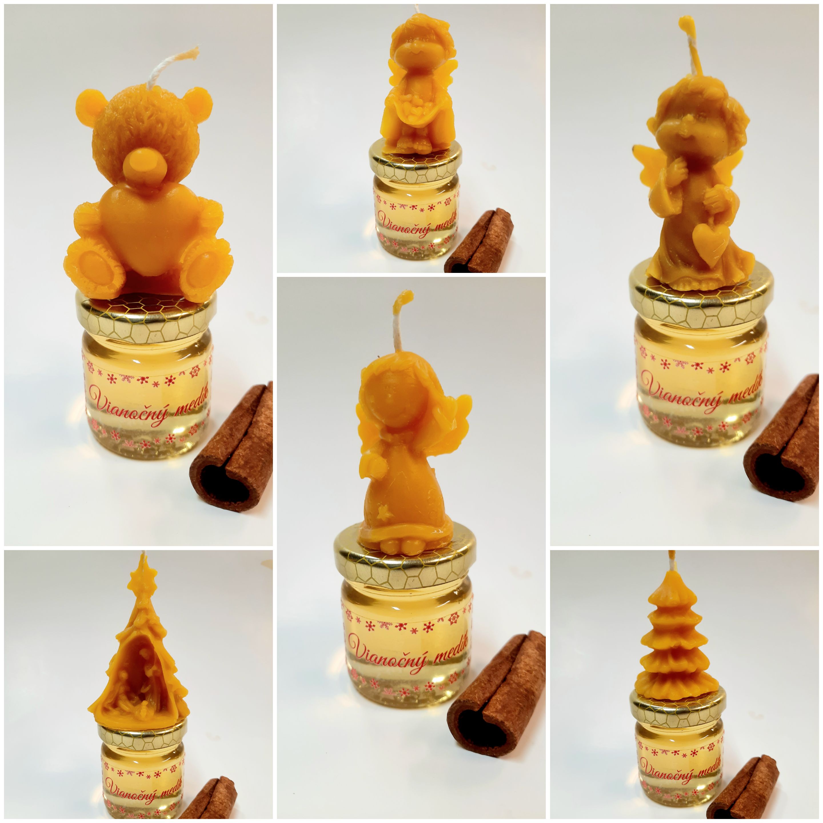 Mini medový darček pozostáva z kvetového medu v 50g balení s vianočnou etiketou a mini sviečkou z pravého včelieho vosku. Darček je zabalený v celofáne.